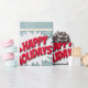 Happy Holidays comic style illustration with Christmas bell and snowflakes decoration on blue background