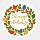 Happy Holidays Wreath Christmas Lights and Holly Classic Round Sticker
