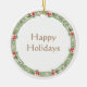 Happy Holidays Wreath Greenery Berries Business Ceramic Ornament