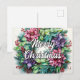 This unique Merry Christmas postcard features an illustration of a decorative holiday wreath with some pretty flowers. Please feel free to adjust all the available options as you wish.