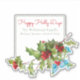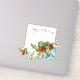 Jolly and vibrant spray of red and green holly and delicate sky blue forget-me-nots with editable text fields on square label with complementary green border.