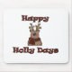 Holiday greeting cards, mugs, tote bags, T-shirts, and more featuring a reindeer in a red checked scarf and text that reads "Happy Holly Days"!