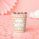 Cute white bunny rabbits hop around this paper cup. Great for Spring, Easter, Birthdays, or for any bunny lover! Available in peach, blue or green. Personalise with your own special message.