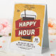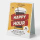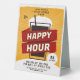 Orange Happy Hour Drink Beer Advertisement Bar Table Tent Sign Featuring Drink With Foam Illustration & Red Banner. Customise To Your Liking.