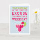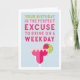 Perfect for your happy hour buddy, this funny birthday card reads "your birthday is the perfect excuse to drink on a weekday" in colourful lettering with a fruity pink and red margarita cocktail illustration. Customise with your own pre-printed inside message or leave the sample text (shown with "cheers to you -- happy birthday."