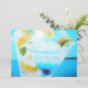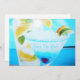 2 delicious cocktails in turquoise with lemons and limes and the words Save The Date in turquoise script on the front . the back has the same script for time,date and place for you to fill in.