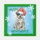 Celebrate the holiday season with a cute Australian Cattle Dog puppy wearing a Santa hat amid snowflakes and the words, Happy Howlidays! Great holiday gift idea for ACD-loving family and friends.