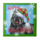 Celebrate the holiday season with a happy Bouvier des Flandres wearing a stocking hat surrounded by snowflakes and the words, Happy Howlidays! Great holiday gift idea for Bouvier-loving family and friends.