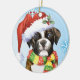 Celebrate the holiday season with a cute Boxer puppy wearing a Santa hat and scarf amid snowflakes with the words, Happy Howlidays, on the back! Great holiday gift idea for Boxer-loving family and friends.