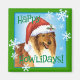 Celebrate the holiday season with a happy Collie wearing a Santa hat surrounded by snowflakes and the words, Happy Howlidays! Great holiday gift idea for Collie-loving family and friends.