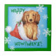 Celebrate the holiday season with a cute Longhaired Dachshund puppy inside a Santa hat amid snowflakes and the words, Happy Howlidays! Great holiday gift idea for Doxie-loving family and friends.