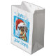 Celebrate the holiday season with a present in this cute gift bag decorated with a cute Dachshund wearing a Santa hat and scarf amid snowflakes and the words, Happy Howlidays! Great holiday gift idea for Doxie-loving family and friends.