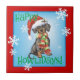 Celebrate the holiday season with a cute Dachshund wearing a Santa hat and scarf amid a bunch of snowflakes and the words, Happy Howlidays! Great holiday gift idea for Doxie-loving family and friends.