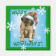 Celebrate the holiday season with a cute Leonberger puppy wearing a stocking hat amid snowflakes and the words, Happy Howlidays! Great holiday gift idea for Leo-loving family and friends.