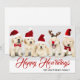 This holiday design features a photo of five Golden Retriever puppies wearing red Christmas hats and the text "Happy Howlidays" written in popular red typography with a family name added below. The back of the card has been left blank for you to add your message. To personalised you are able to add your own photo and edit the text.