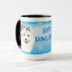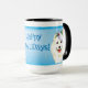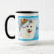 Celebrate the holidays with a happy Samoyed wearing a striped stocking cap amid a flurry of snowflakes and the words, Happy Howlidays! Great holiday gift idea for Samoyed-loving family and friends.