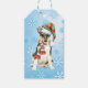 Celebrate the holiday season with a present decorated with a gift tag with a cute Smooth Collie puppy wearing a striped stocking cap and scarf amid snowflakes! Great for giving to Collie-loving family and friends.