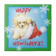 Celebrate the holiday season with a cute Toy Poodle puppy in a Santa hat amid snowflakes and the words, Happy Howlidays! Great holiday gift idea for Poodle-loving family and friends.