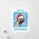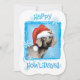 Celebrate the holiday season with a cute Weimaraner wearing a Santa hat amid snowflakes with the words, Happy Howlidays! Great for Weim-loving family and friends.