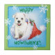 Celebrate the holiday season with a cute little West Highland White Terrier puppy sitting in a Santa hat amid snowflakes and the words, Happy Howlidays! Great holiday gift idea for Westie-loving family and friends.