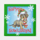 Celebrate the holiday season with a cute Wirehaired Dachshund wearing a stocking hat and scarf amid a flurry of snowflakes and the words, Happy Howlidays! Great holiday gift idea for Doxie-loving family and friends.