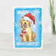 Send Christmas greetings with this card of a cute Yellow Labrador Retriever puppy wearing a Santa hat and striped scarf amid snowflakes and the words, Happy Howlidays! Great for Yellow Lab-loving family and friends. Have a Happy Howliday!