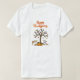 This t-shirt has two adorable huskies pouncing and playing in leaves falling from a tree. Text has written Happy Thanksgiving.