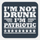 "I'm not drunk I"m patriotic" is an original funny saying about the 4th of July celebration graphic design with awesome typography font lettering that is a great gift idea for men, women, friends, and all families who celebrate this beautiful holiday. The best unique holiday present for your independence day party is on the 4th of July.
