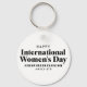 March 8th is International Women's Day key chain. Black and white coloured button to celebrate women's equality with hashtag #InspireInclusion.
