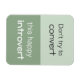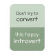 There's nothing wrong with being introverted. Give people who want to make you more extraverted a polite message with this slogan that says: "Don't try to convert this happy introvert"