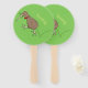 Happy jumping kiwi with bow tie cartoon design hand fan