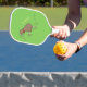 Happy jumping kiwi with bow tie cartoon design pickleball paddle