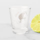 Happy jumping kiwi with bow tie cartoon design shot glass