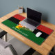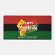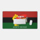 Modern HAPPY JUNETEENTH Pan African Desk Mat with CUSTOMIZABLE TEXT. The design shows paint strokes in red, orange and green, with a background of red, yellow and green grunge-effect brush strokes and a yellow power fist. This is set against the colours of the Pan African flag: red, black and green. The wording reads HAPPY JUNETEENTH. This Juneteenth Desk Mat would be a great gift for any Juneteenth home office decor and to celebrate this African American Black independence day holiday.