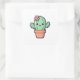 Happy Kawaii Cactus – Cute Illustration Square Sticker