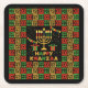 Happy Kwanzaa Candles Red Black Green Yellow Square Paper Coaster