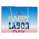 Graphic design for American Labour Day: A slightly distressed design with a fun display font in red, white, and blue. This Happy Labour Day t-shirt celebrates various professions and trades on workers day. © Copyright 2023 P.D., Holiday Patterns And Paintings. All rights reserved.