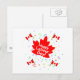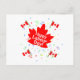 A postcard with a cheerful Labour Day design of a big red maple leaf, confetti and Canadian flags.