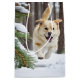 Happy Labrador Retriever dog running in winter woods