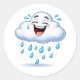 Cute cartoon rain cloud character laughing joyfully while dropping shiny blue raindrops. Featuring a cheerful face, rosy cheeks, and playful water splashes, this fun illustration brings positive weather vibes and childlike charm. Perfect for kids designs, stickers, nursery decor, weather icons, educational materials, apps, prints, and playful digital or branding projects.