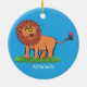 Happy lion with butterfly cartoon illustration ceramic ornament