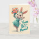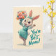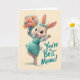 A cheerful Mother’s Day card featuring an energetic baby bunny leaping with joy as she presents a colorful bouquet to her mama. With charming painterly textures and bright, happy tones, this design perfectly captures the enthusiastic love of a little one—fur baby or human—celebrating their favorite mama. A sweet, uplifting choice for Mother’s Day.