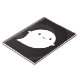 A kawaii ghost on a spooky wooky swirly black background. Great for Halloween.