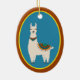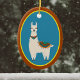 This design features a whimsical llama, with a lovely saddle blanket in bright colours of red, blue, yellow, and green, against a blue background. Llamas are an important part of the culture of many countries in South, Central, and North America, helping to guard other animals like sheep and to help carry baggage on rugged terrain. They are considered smart and social and often become leaders of other herds of animals.