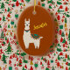 This design features a whimsical llama, with a lovely saddle blanket in bright colors of red, blue, yellow, and green, against a red background. Llamas are an important part of the culture of many countries in South, Central, and North America, helping to guard other animals like sheep and to help carry baggage on rugged terrain. They are considered smart and social and often become leaders of other herds of animals.