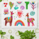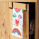 A cheerful folk art painting featuring llamas, cactus, sunny skies, flowers and a hopeful rainbow. This quality kitchen towel makes a lovely housewarming or hostess gift. A colourful and very sweet addition to your kitchen.