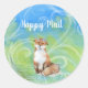 Happy Mail Smiling Brown Fox Classic Round Sticker