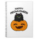 Happy Meowloween Funny Halloween Pun features a happy black cat in a pumpkin. Cute pun gift for family and friends who love halloween cat puns.