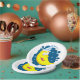 A happy yellow moon face wearing a blue and white hat. This design looks really effective on these Paper Plates