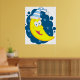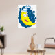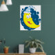 A happy yellow moon face wearing a blue and white hat. This design looks really effective on these Poster